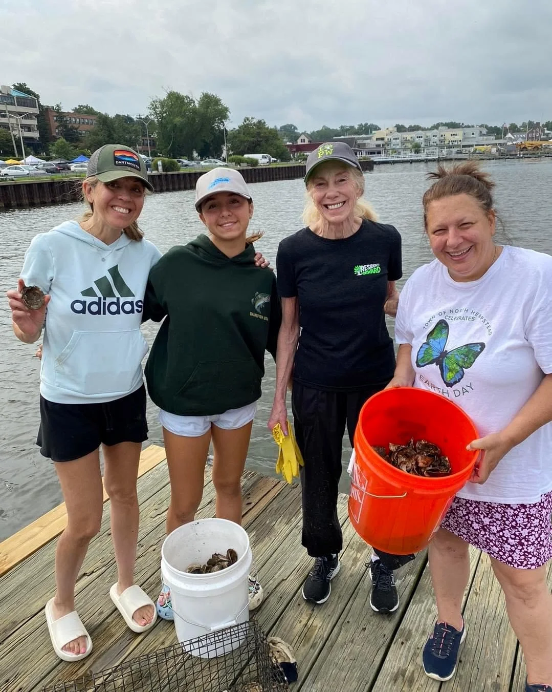 Residents Forward volunteers with Councilwoman Mariann Dalimonte cleaning oysters for restoration in Manhasset Bay